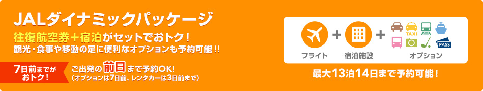- JALダイナミックパッケージは、(株)ジャルパックが企画・実施しています。